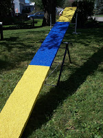 The teeter or see-saw is also 12′ long and 12″ wide, the mid-point of the teeter is 24″ off the ground – and the center support MUST be visible on either side of the plank. Dogs must remain on the teeter until the board hits the ground on the other end. Failure to do so is a missed contact – or a fly-off. We just rubberized our home teeter a few weeks ago – it was quite the interesting project!